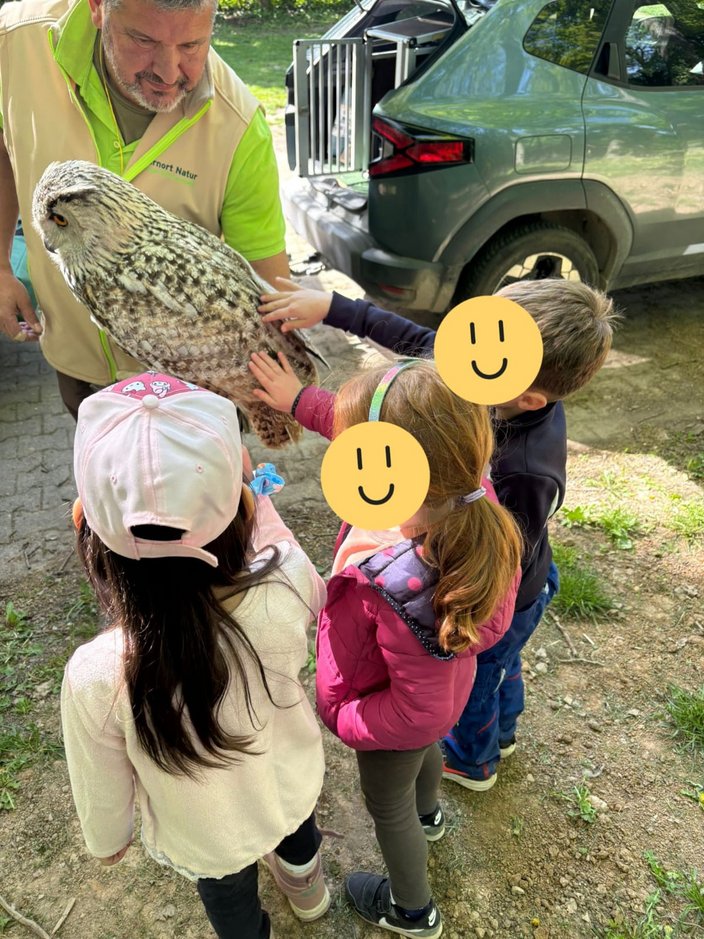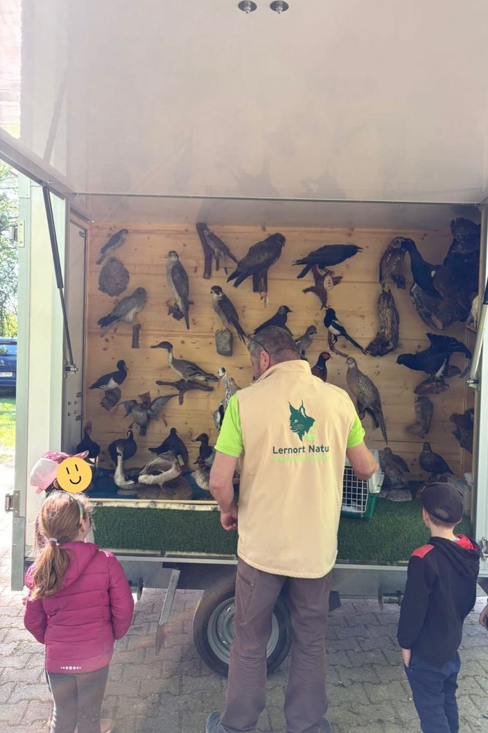 Natürlich durfte auch der Lernort Natur Wagen nicht fehlen: Mit heimischen Wildtier-Präparaten wurde Wissen greifbar gemacht und viele Fragen der Kinder beantwortet. Besonders begeistert waren die Kinder von den zwei lebenden Frettchen Blacky und Snow sowie dem Uhu Lucy, die für staunende Augen sorgten und das Naturerlebnis perfekt abrundeten.