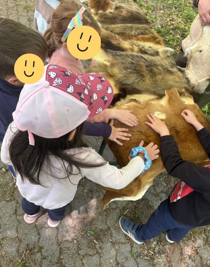 Ein besonderer Höhepunkt war der Pirschpfad: Mit viel Neugier und wachem Blick entdeckten die Kinder verschiedene „Wildtiere“ wie Rehkitz, Frischling, Feldhase, Fuchs und Dachs. An einem weiteren Tisch wurden Felle und Geweihstangen gezeigt und kindgerecht erklärt – ein anschaulicher Einblick in Merkmale, Lebensweise und Anpassungen unserer Wildtiere.