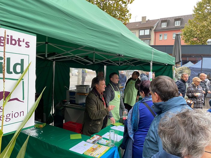 Vertreten war zum zweiten Mal auch der Hegering 1 unserer Kreisjägervereinigung unter Leitung von Udo Schäfer mit insgesamt 25 beteiligten Jägerinnen und Jägern. Neben vielen Informationen zum Thema Wildbret wurden auch angeregte und positive Gespräche über das Thema Nachhaltigkeit und insbesondere nachhaltiges Essen, was unser Wildbret definitiv ist, geführt. Die Besucher konnten selbstverständlich auch direkt Bestellformulare für Wildbret mitnehmen.