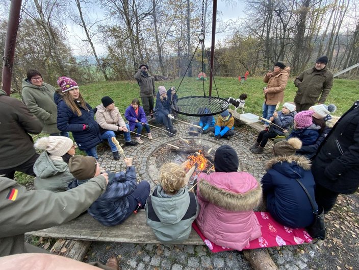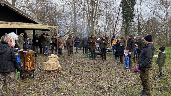 Bei kaltem, aber dennoch herrlichem Winterwetter fand am Sonntag, dem 11.12., die Weihnachtsfeier der Jung(e)Jäger auf dem Grillplatz in Gondelsheim statt. Anwesend waren circa 30 Jägerinnen und Jäger mit Familie, sodass wir am Ende mehr als 50 Personen waren. Natürlich durfte ein Weihnachtsbaum nicht fehlen, welcher von Jürgen Häffele organisiert wurde. Diesen durften die Kinder dann mit selbstgebasteltem Schmuck zieren. Auch unser Lernort Natur Anhänger stand vor Ort. Diesmal übernahmen jedoch die Eltern die Erklärungen, waren ja schließlich alles Jägerkinder ;).