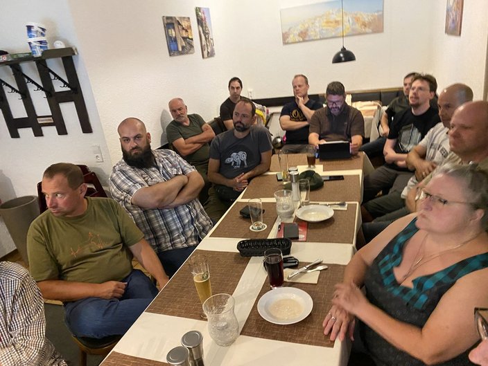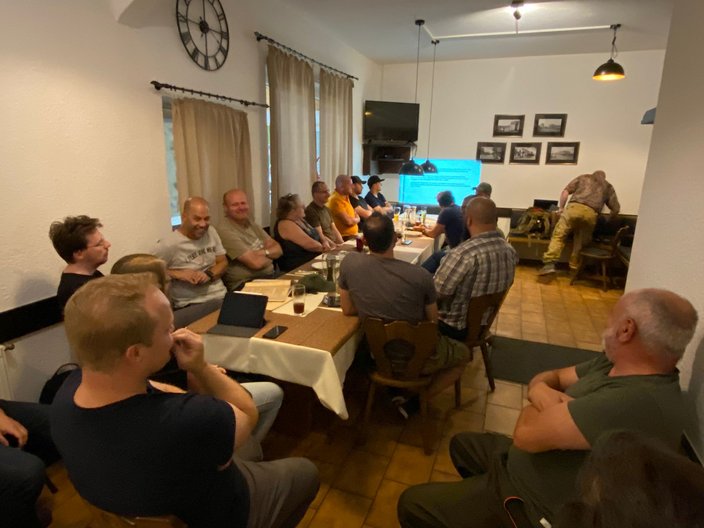 Nach einem gut besuchten Jägerschießen am Dienstag, dem 28.06., traf sich der Jung(e)Jäger Stammtisch im Vereinsrestaurant. Zuerst gab es ein Update über die Geschehnisse der letzten Wochen. Hier berichtete Björn Heneka unter anderem über die vergangenen Rehkitzrettungen und das Thema Lernort Natur. Auch wurde nochmals darauf hingewiesen, dass der Stammtisch nicht als Vermittlungsbörse für Reviere agieren möchte, sondern als Netzwerk. Das Ziel ist es (Jung)JägerInnen mit anderen (Jung)JägerInnen zu vernetzen, Erfahrungen auszutauschen und in der Jägervereinigung anzukommen.
