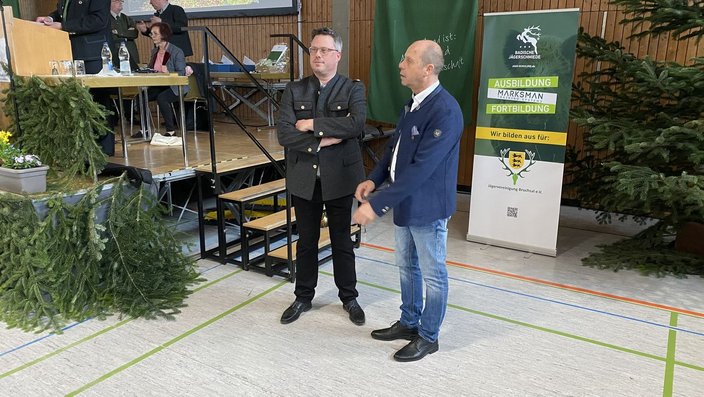 Im nächsten internen Teil der Versammlung wurden die Berichte der Vorstände und Obläute vorgestellt. Nach dem Kassenbericht unseres Kassierers Dr. Micha Kölbach und der Bestätigung dessen durch unseren Kassenprüfer Gerhard Kull konnte der gesamte Vorstand entlastet werden und der Weg für die Neuwahl einiger Ämter stand offen. Die Wahlleitung übernahm unser Landesjägermeister Dr. Jörg Friedmann. Zur Wahl standen die Ämter des Beisitzers, Bläser-, Jugend- und Hundeobmann. Bis auf das Amt des Jugendobmanns gab es keine Veränderung und alle bisherigen Amtsinhaber wurden wiedergewählt. Mit Namen wäre das: